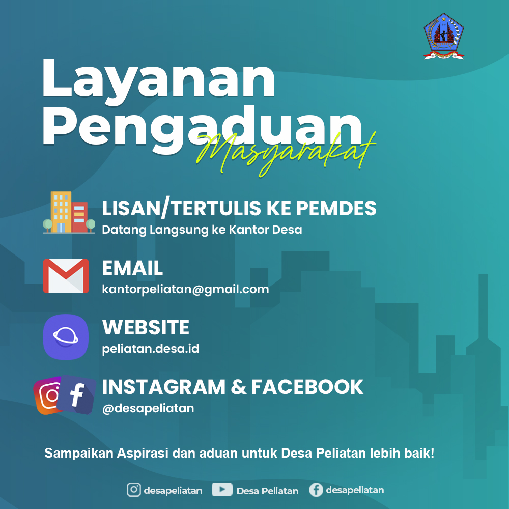 Bagi masyarakat Desa Peliatan yang ingin mengajukan pertanyaan, kritik, saran ataupun keluhan, terhadap penyelenggaraan Pemerintahan Desa Peliatan, dapat disampaikan secara Lisan / Tertulis langsung ke Kantor Desa, atau melalui Email, Website dan Media Sosial resmi Desa Peliatan